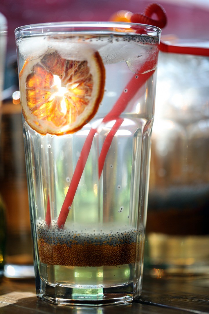 عرق بيدمشک نسترن, خاکشير, تخم شربتي, شکر, يخ