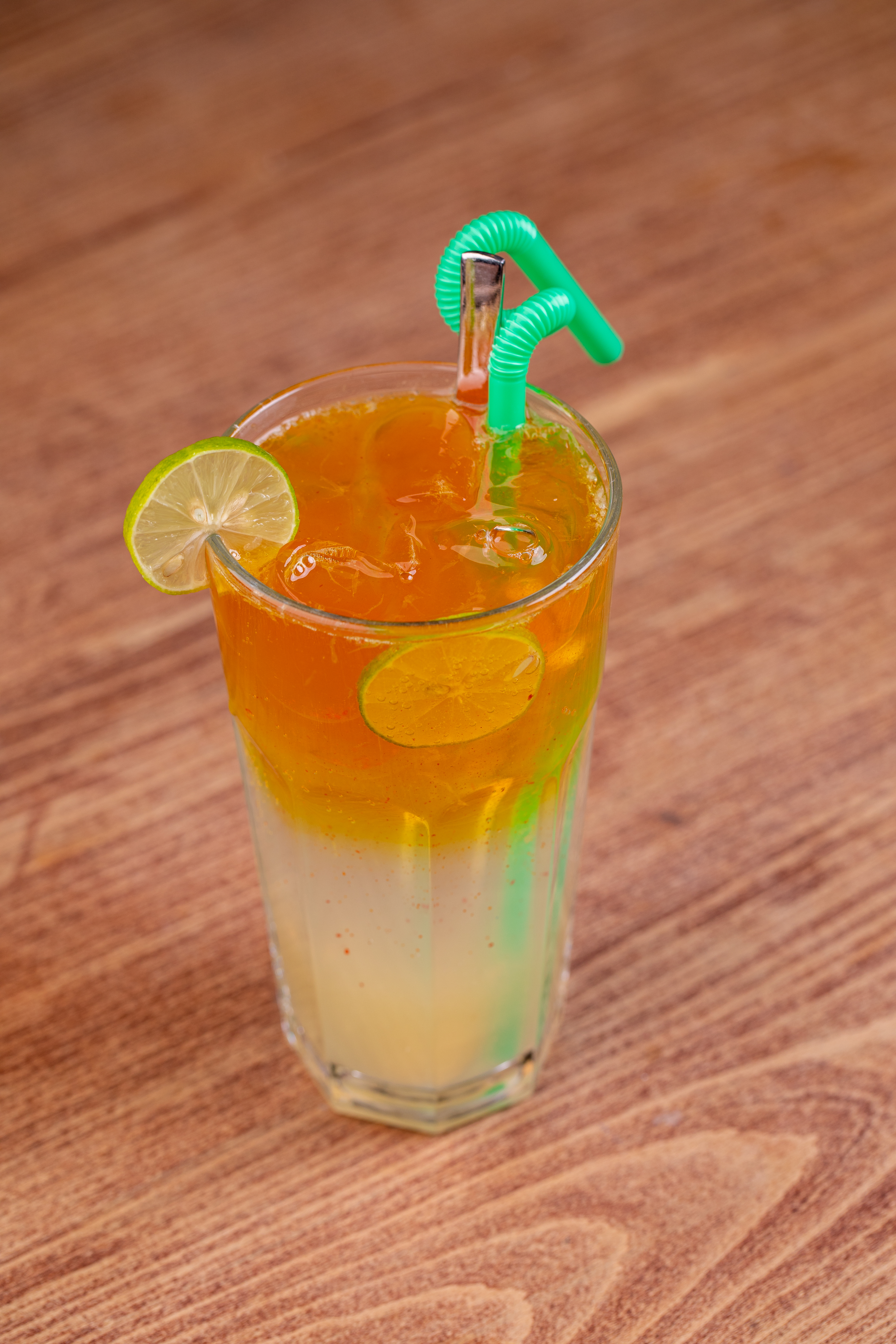ليمو تازه، آب گازدار، شکر، 20 سي سي زعفران